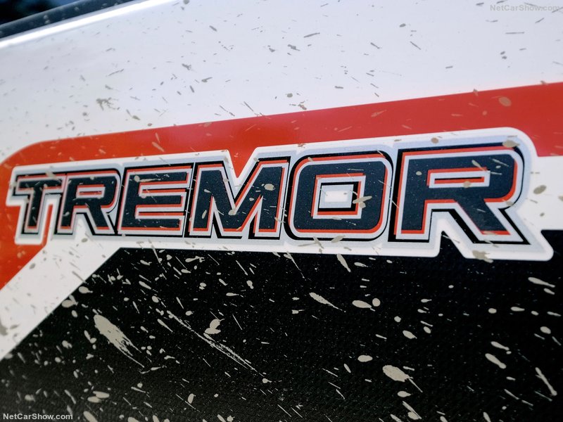 Tremor agrega nuevas características de estilo por dentro y por fuera. La rejilla cuenta con un borde pintado magnéticamente con barras negras que atraviesan el medio y acentos rojos de las fosas nasales en las esquinas. Un distintivo especial viene en ambos lados de la caja de carga, y un paquete opcional de gráficos para el capó y la carrocería agrega personalización adicional. El elegante interior cuenta con asientos con inserciones de gamuza Miko y «Tremor» cosido en los respaldos de los asientos, así como detalles en negro.