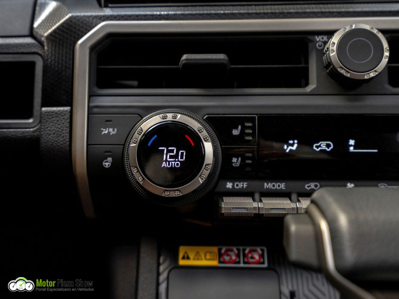 El grado Trailhunter se ha añadido a la línea para permitir a los propietarios ir más allá. La capacidad y durabilidad del 4Runner lo han convertido en uno de los favoritos de los aficionados al todoterreno, y ahora los aventureros tienen una solución llave en mano con un equipo todoterreno desarrollado por el fabricante directamente de fábrica. Toyota ha colaborado con varias empresas de componentes todoterreno para mejorar el ajuste y el acabado. Por ejemplo, el Trailhunter incorporará amortiguadores forjados de 2,5 pulgadas Old Man Emu (OME) de ARB con depósitos remotos externos traseros, junto con un portaequipajes ARB de diseño exclusivo. Los amortiguadores OME junto con los neumáticos Toyo Open Country A/T de 33 pulgadas elevan el Trailhunter dos pulgadas adicionales delante y una pulgada y media detrás. Una toma de aire estándar de perfil bajo y montaje alto suministra aire más limpio para el tren motriz i-FORCE MAX de serie. El Trailhunter añade una protección que incluye raíles para rocas y placas de deslizamiento de acero de alta resistencia para una gran capacidad de aventura fuera de la carretera. El Trailhunter también está equipado con una rejilla de herencia con letras «TOYOTA» en bronce y una barra de luces LED integrada de 20 pulgadas que se complementa con faros antiniebla LED RIGID de color seleccionable. Un potente inversor de 2400 W CA suministra corriente a dos puntos del habitáculo y al maletero trasero. El Trailhunter está preparado para personalizarlo con otros accesorios Toyota mediante tres interruptores auxiliares de fácil acceso precableados por todo el vehículo.